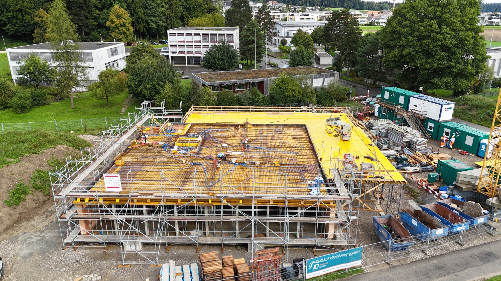 Der Spatenstich für das neue Schulhaus ist erfolgt. Im Neubau werden sechs neue Klassenzimmer und Gruppenräume entstehen um den gewachsenen Schulraumbedarf abzudecken. Die Konstruktion ist in Massivbauweise geplant. Die Gesamtkosten belaufen sich auf rund 7 Mio. CHF.