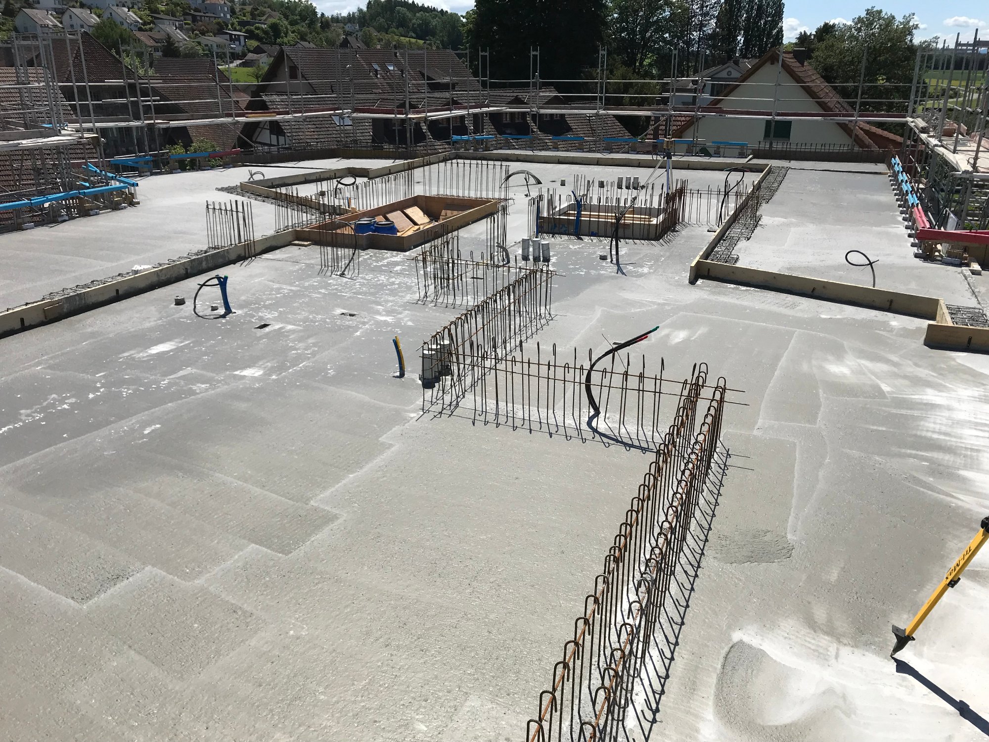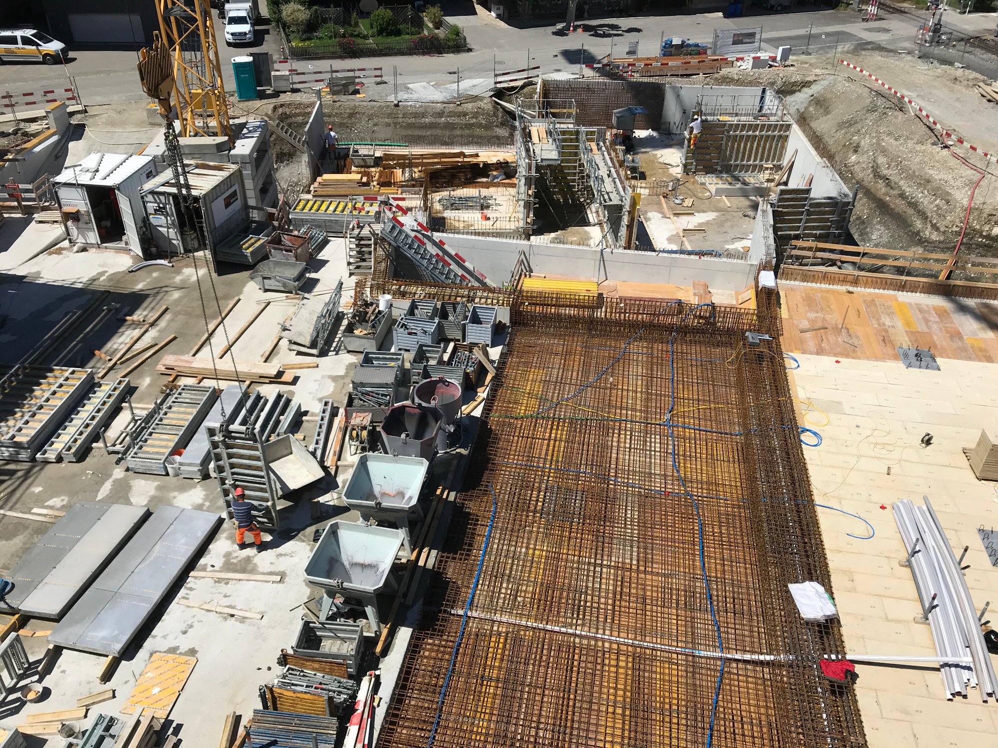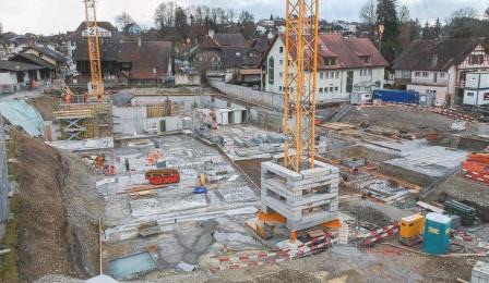 Nebst der anspruchsvollen Gebäudegeometrie stellte der hohe Grundwasserspiegel sowie die an die Baugrube angrenzende ASM-Bahnlinie eine besondere Herausforderung bei der Planung und Umsetzung dar.