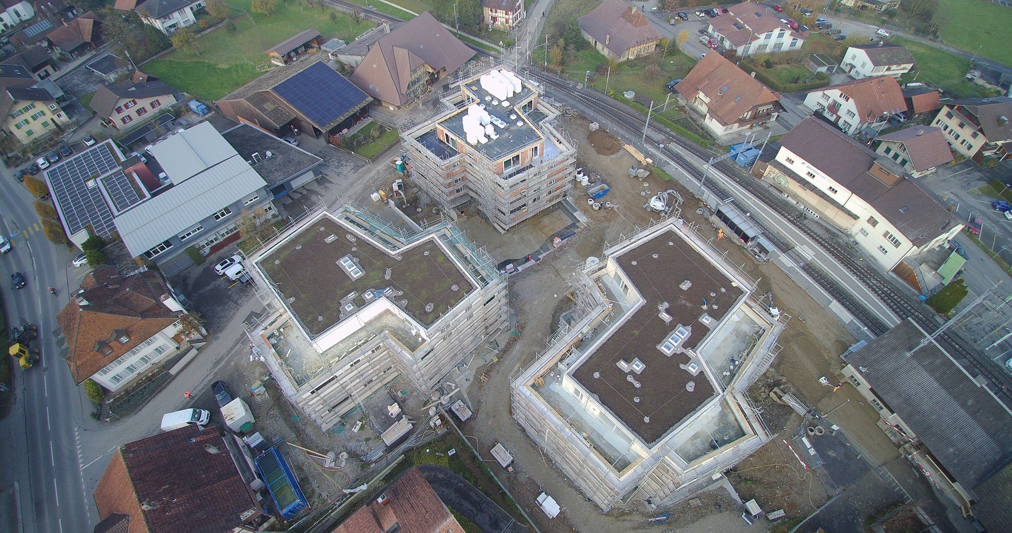Im Zentrum von Aarwangen, direkt neben dem Bahnhof, entstand eine Wohnüberbauung bestehend aus drei Mehrfamilienhäusern mit 2½-, 3½- und 4½-Zimmer-Wohnungen, Tiefgarage.